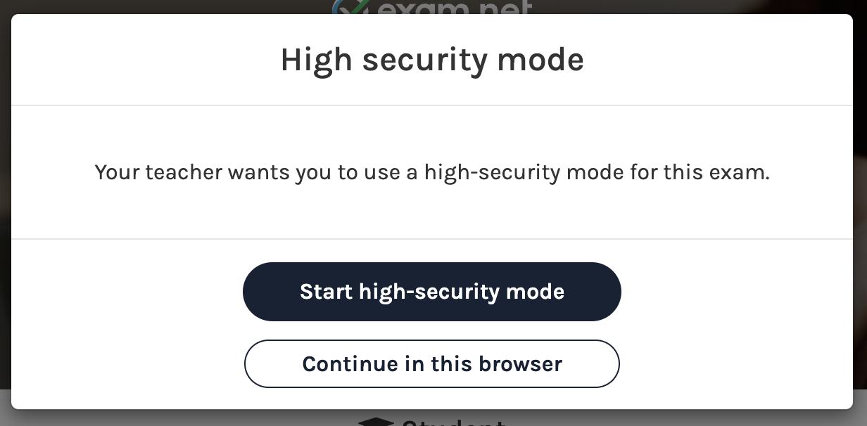 Den hohen Sicherheitsmodus (SafeExamBrowser, nicht Take a Test!) auswählen.