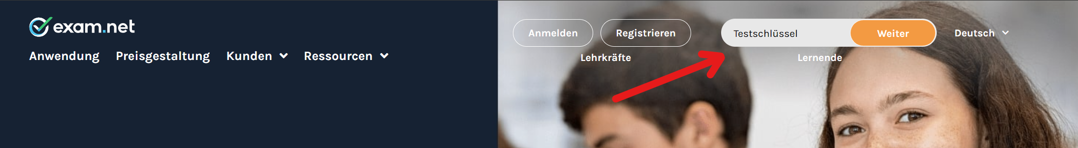 Anschliessend mit einem beliebigen Browser 👉 exam.net öffnen und oben rechts den Prüfungsschlüssel kd13oN eingeben.