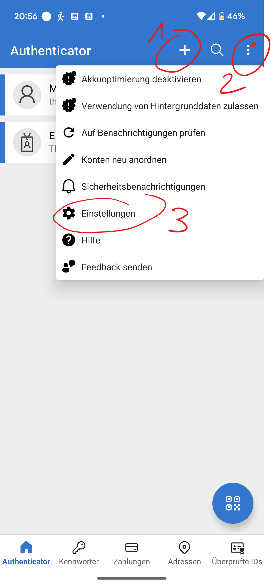 Ouvrez l'application Authenticator sur votre smartphone