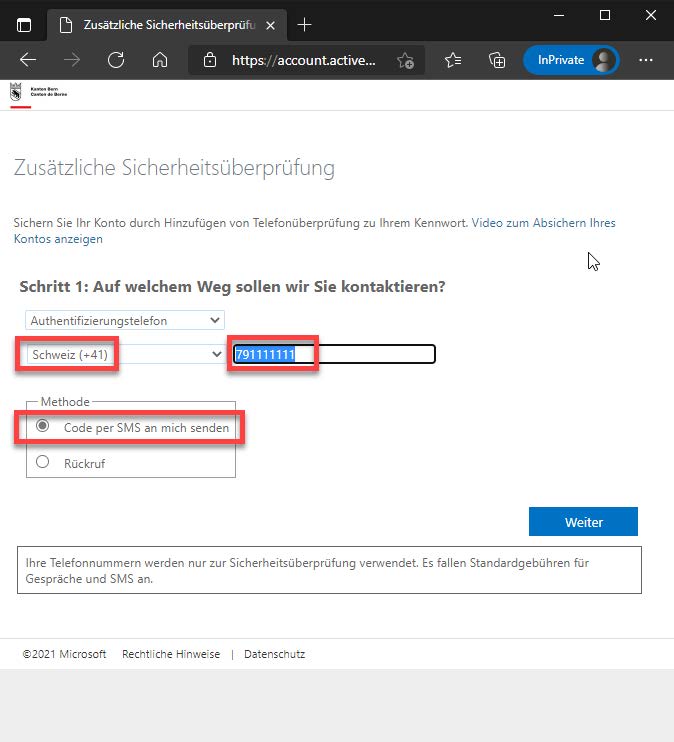 Sélectionnez la méthode [Téléphone d'authentification], le pays du fournisseur, le numéro de téléphone mobile et choisissez [Envoyer un code par SMS]. Confirmez les entrées avec [Suivant].