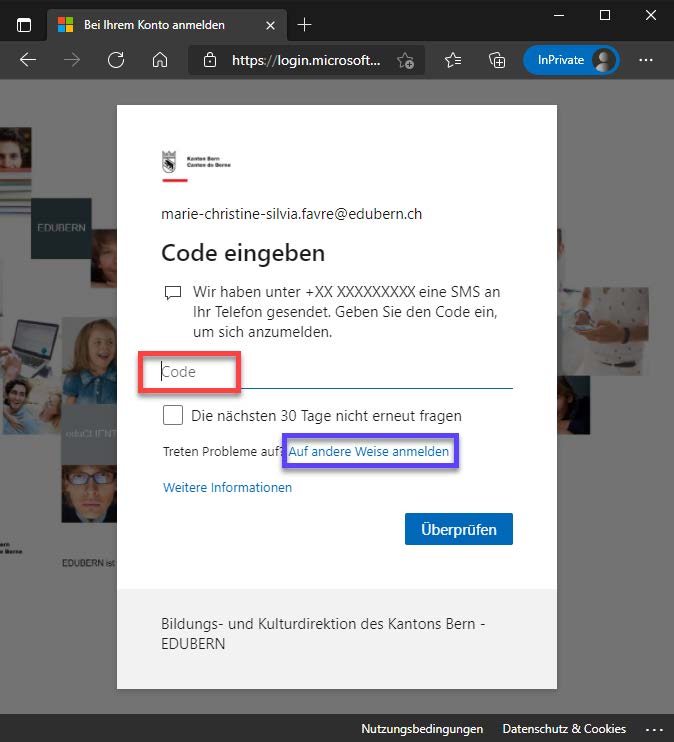 Lors de la prochaine connexion via le lien du point 1, une invite demandera maintenant d'entrer le code SMS.
