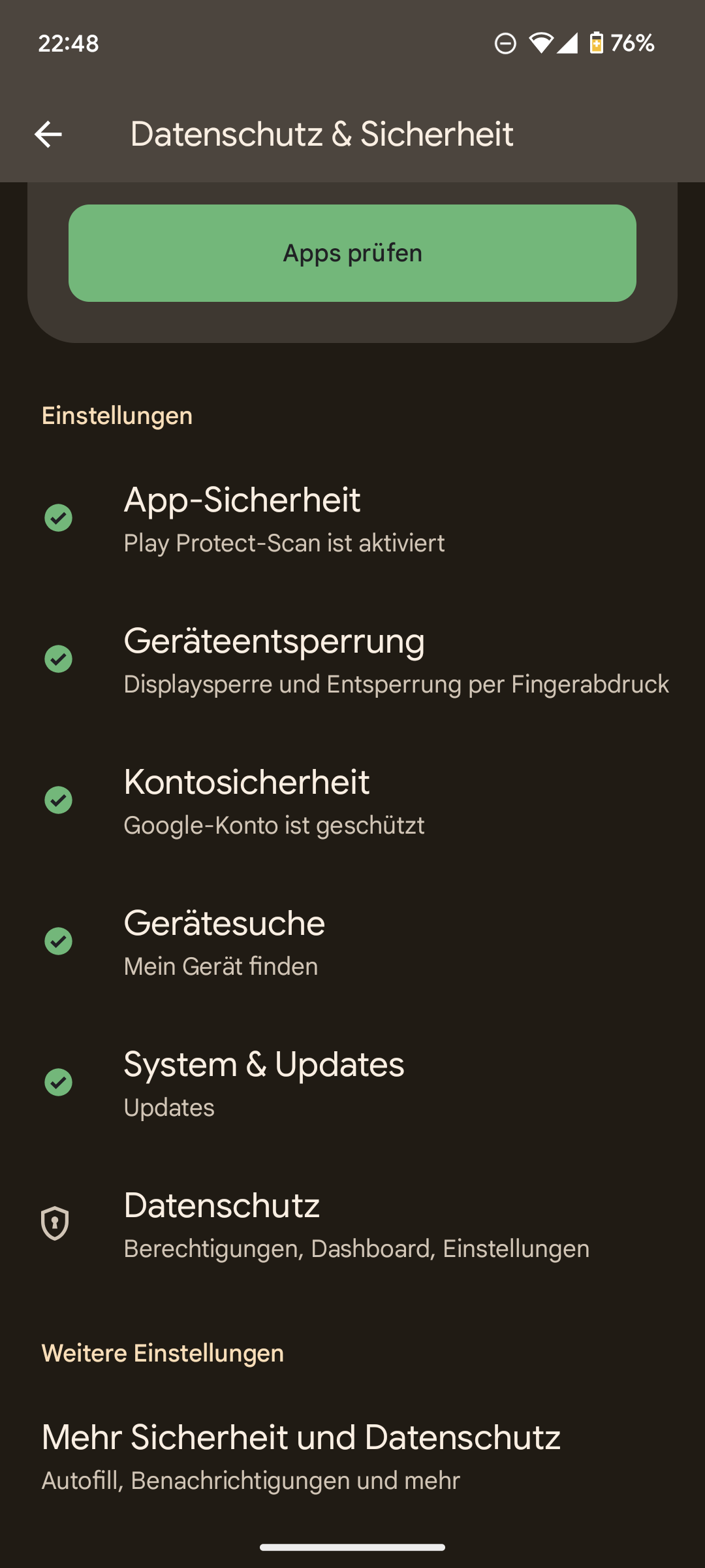 Sonst: öffne die Einstellungen und wähle Datenschutz und Sicherheit