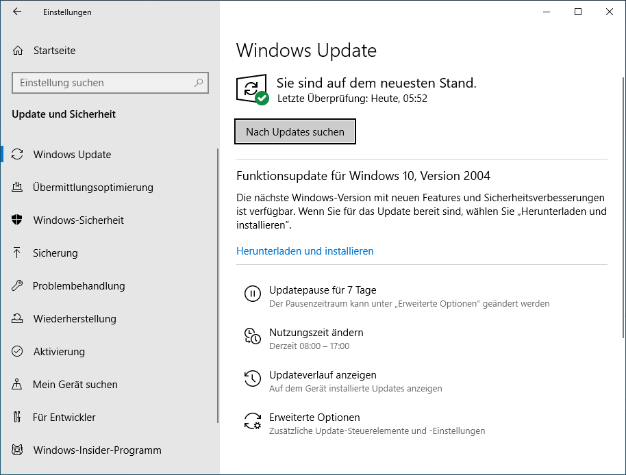 - Überprüfe, ob ein Funktionsupdate zur Installation bereit steht. Falls ja, klicke auf Herunterladen und installieren.