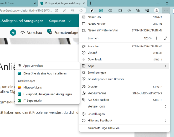 Beispiel 1: Link zur Störungsmeldung als App: 👉 👉 https://forms.office.com/r/akUrVUFaRu (für Lehrpersonen)