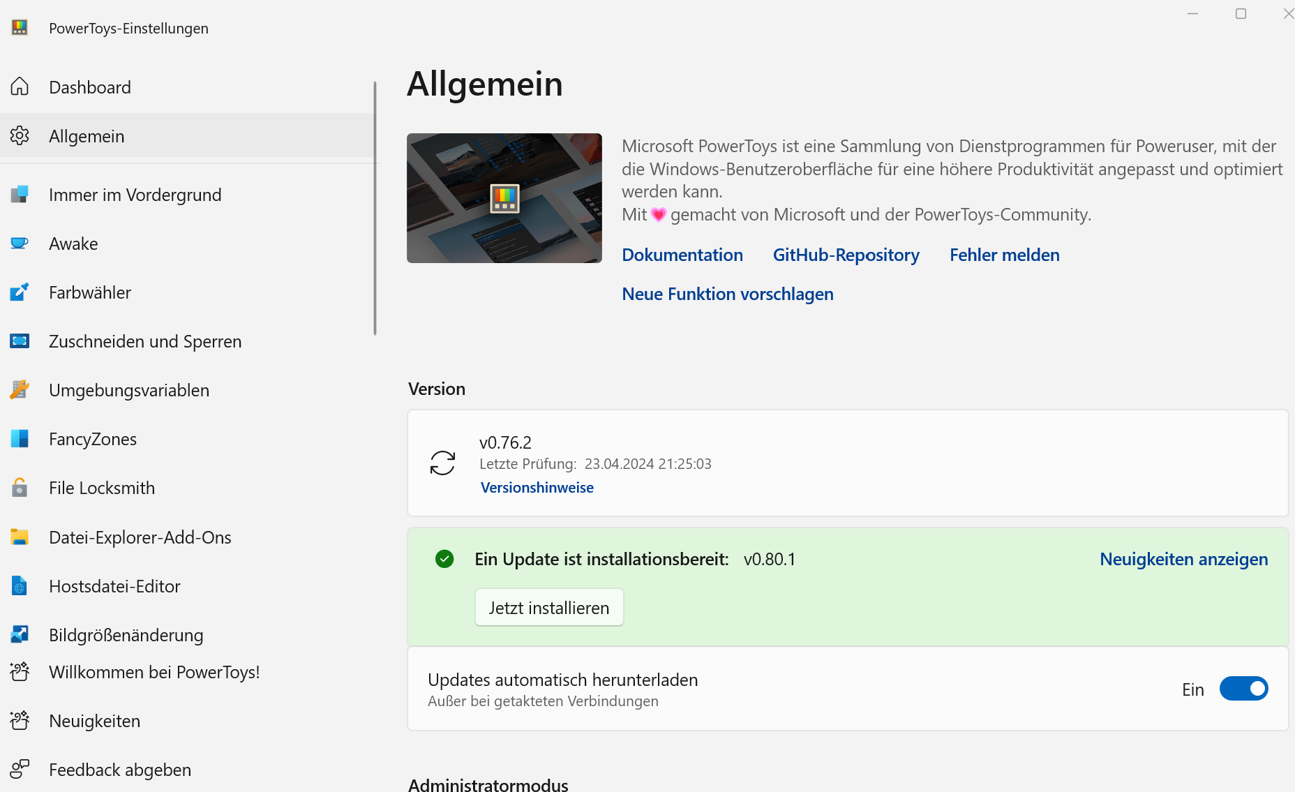 Mit den PowerToys lassen sich auf einfache Weise Einstellungen anpassen, so etwa, dass der Bildschirm bei Präsentationen nicht dunkel wird.