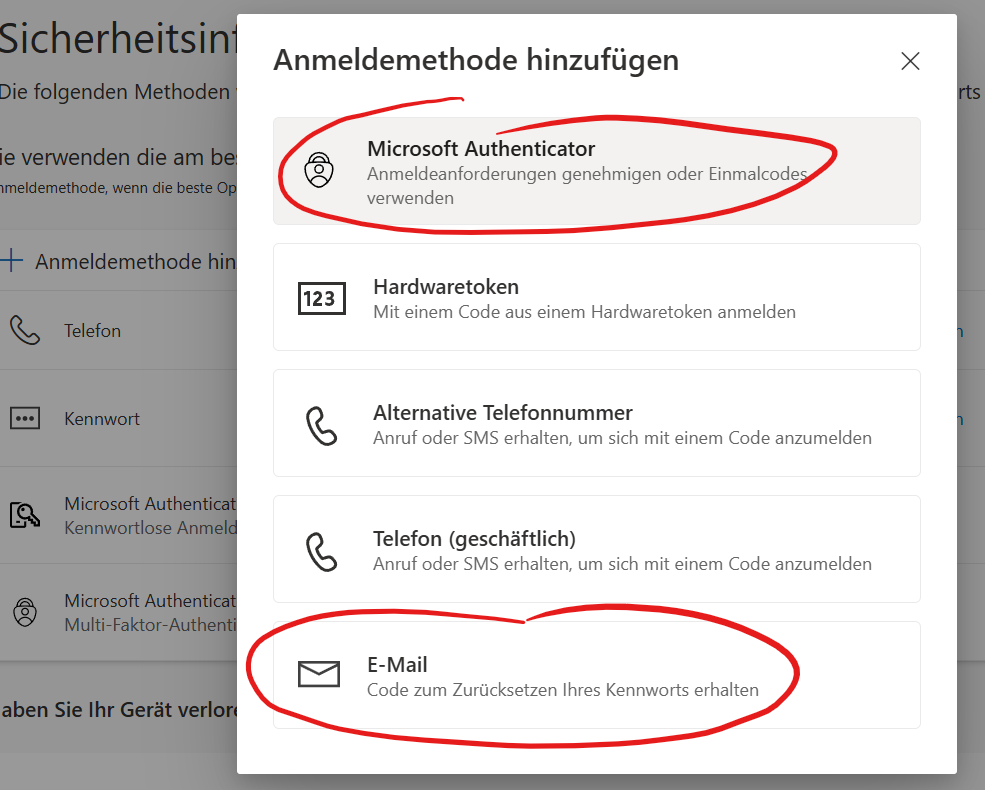 Im sich öffnenden Fenster kannst du die gewünschte Anmeldemethode wählen. Du kannst übrigens die Authenticator App auf einem weiteren Gerät installieren (altes Smartphone, iPad, Android Tablet).