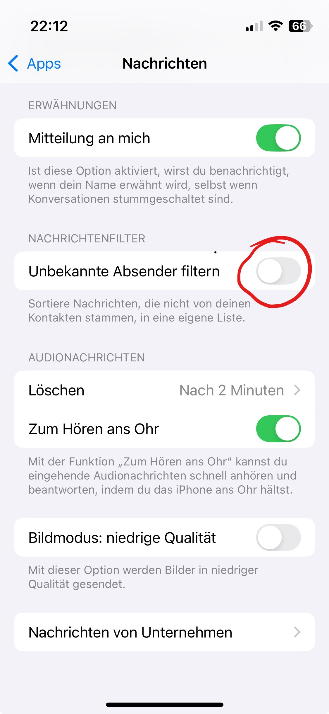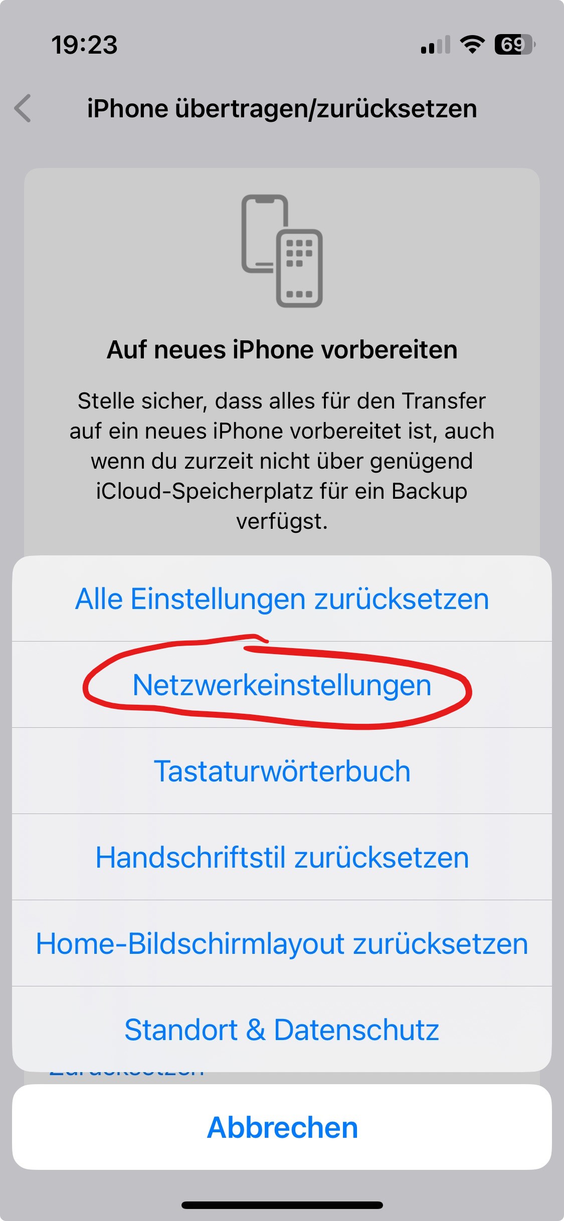 Das kann 2 mögliche Ursachen haben: Entweder ist auf deinem Smartphone ein SMS-Filter aktiviert oder auf der SIM-Karte deines Mobile-Anbieters verhindert eine Einstellung den Empfang. SMS-Filter prüfen Wähle Einstellungen scrolle runter zu App, wähle App. Scrolle runter zu Nachrichten und wähle diese. Ist dieser Filter gesetzt, kannst du in der Liste nachschauen, ob du eine SMS von 079 807 10 11 erhalten hast und diese Nummer zu den bekannten Absendern hinzufügen. Wenn dieser Filter nicht gesetzt ist, dann gehe zur nächsten Lösung "Netzwerk zurücksetzen". Hinweis: Je nach Android-Version oder Hersteller können die Screenshots anders aussehen. Öffne die Nachrichten-App und tippe danach auf das Symbol für deinen Kontonamen: Hier wählst du Als Spam markiert und blockiert. Wenn du folgenden Screen siehst, musst du die Lösung "Netzwerkeinstellungen zurücksetzen" wählen. Siehst du einen Ordner mit SMS-Nachrichten, suchst du eine Nachricht von 079 807 10 11, öffne sie und tippe auf Kein Spam danach solltest du die SMS empfangen können. Netzwerk-Einstellungen zurücksetzen Wähle Einstellungen und danach Allgemein Hier wählst du iPhone übertragen/zurücksetzen ACHTUNG: Nichts Falsches wählen, wenn du die Option „Alle Inhalte & Einstellungen löschen“ wählst, wird dein gesamter Inhalt gelöscht. Wähle Netzwerkeinstellungen: Alle Netzwerkeinstellungen werden zurückgesetzt. Außerdem wird der unter „Einstellungen“ > „Allgemein“ > „Info“ zugeordnete Name auf „iPhone“ zurückgesetzt. Zertifikate, die manuell als vertrauenswürdig eingestuft wurden (etwa für Websites), werden in „nicht vertrauenswürdig“ geändert. Wähle Einstelllungen und scrolle runter zu System, wähle dies an. Die Screenshots stammen von einem Pixel mit Android 15 und Android 16. Je nach Android-Version und Hersteller des Smartphones können die Menüs anders ausschauen. Scrolle nach unten und wähle Optionen zum Zurücksetzen an. Wähle Einstellungen für Mobilfunknetze zurücksetzen aus.