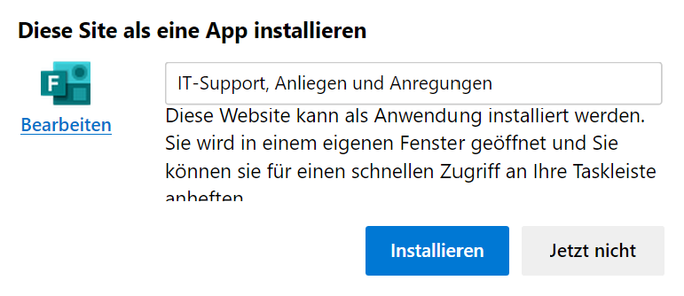Eine vielbenötigte Website als App auf dem Startbildschirm oder auf der Taskleiste ablegen.