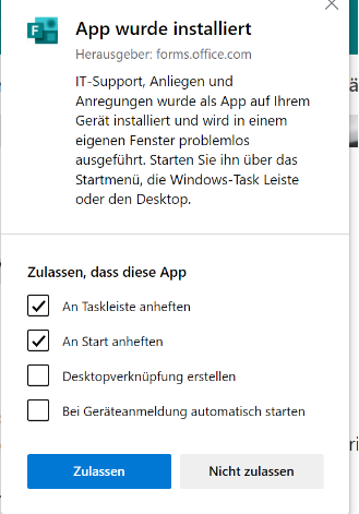 Beispiel 1: Link zur Störungsmeldung als App: 👉 👉 https://forms.office.com/r/akUrVUFaRu (für Lehrpersonen)